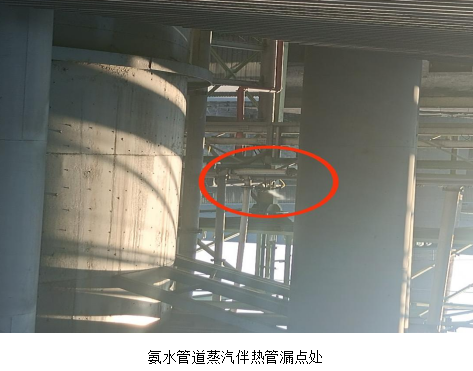7月26日早上,丙班白班當(dāng)班脫硫巡檢正常巡檢到一期塔區(qū)時(shí),發(fā)現(xiàn)位于高空橋架位置,尿素水解器氨氣輸送管道伴熱管閥欄處存在漏白色霧狀氣體,巡檢初步判斷為蒸汽管道腐蝕泄漏,隨即向生產(chǎn)班班長(zhǎng)和檢修班班長(zhǎng)匯報(bào)該情況。